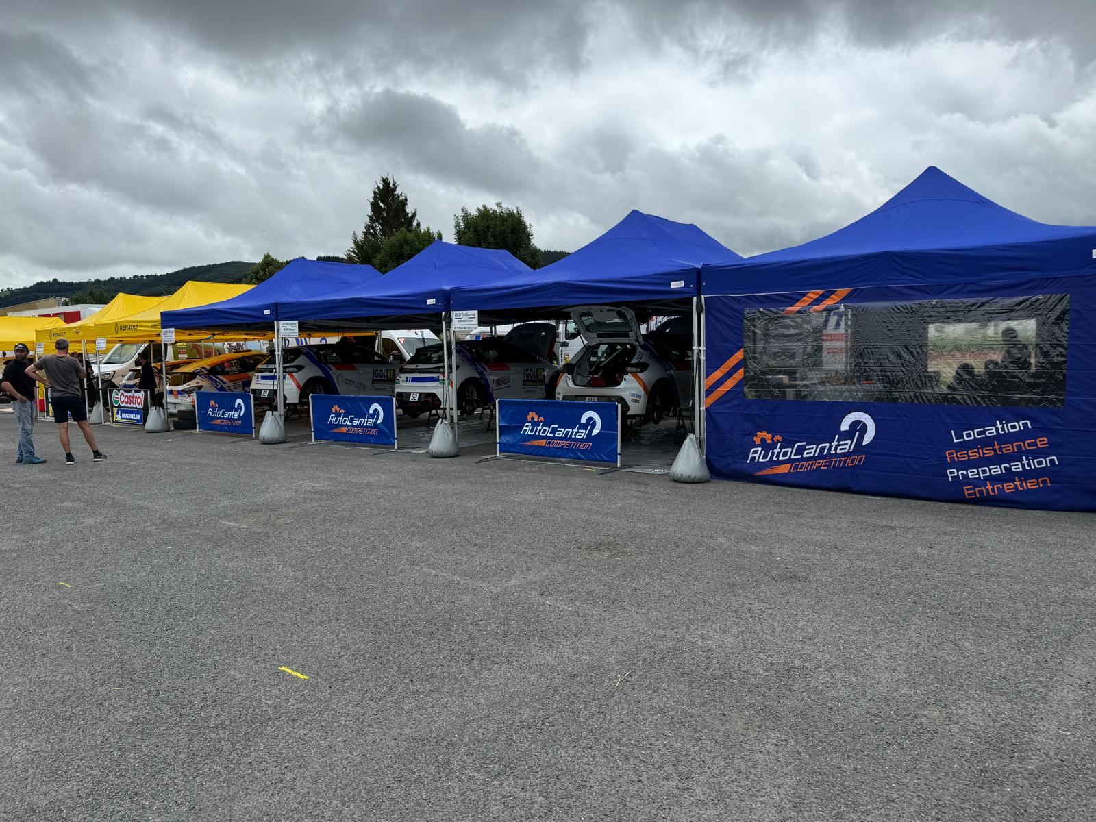 - Le stand complet d’assistance, composé de tentes, barrières et espace repas,